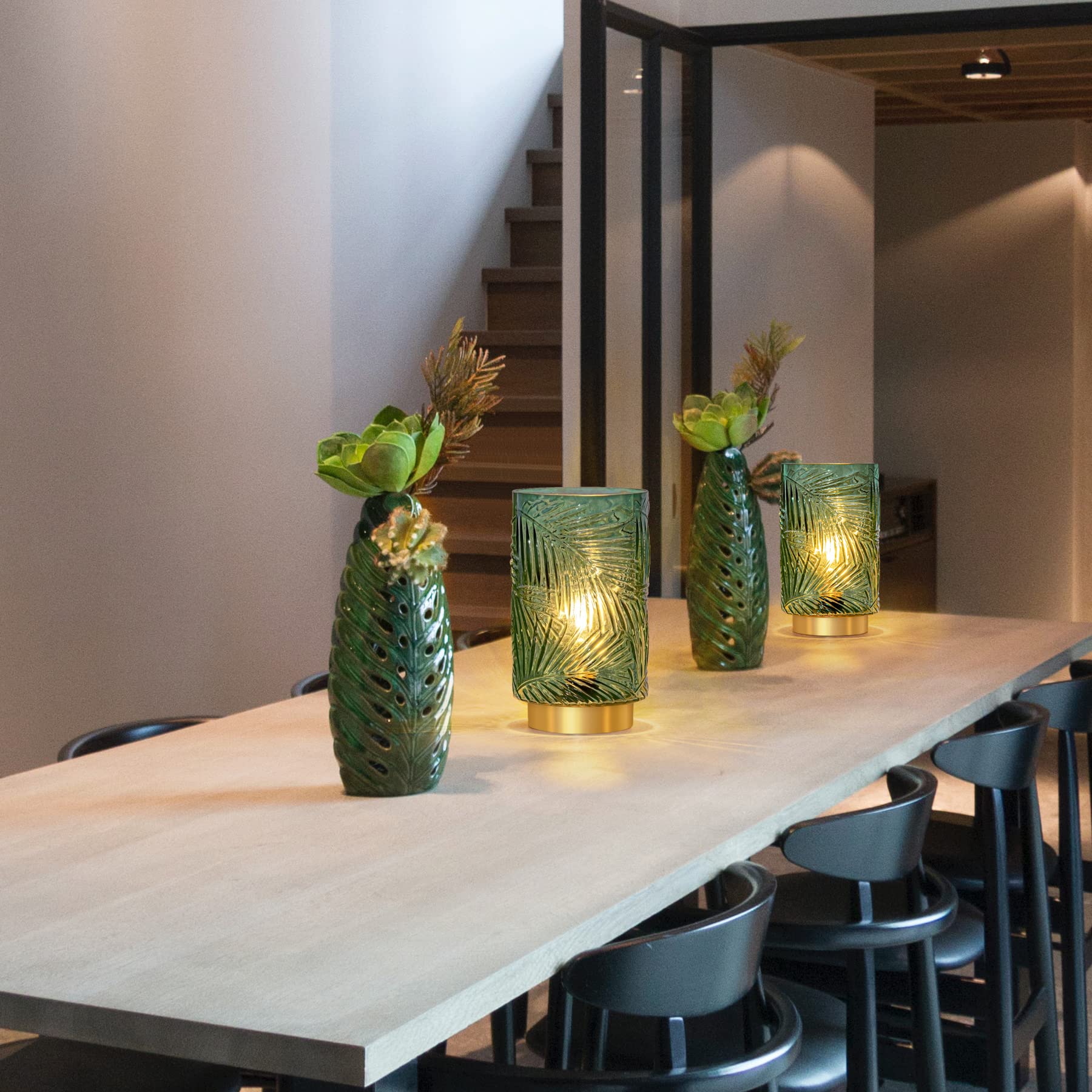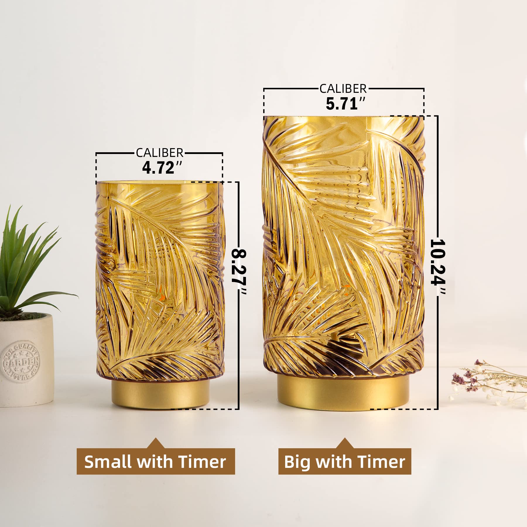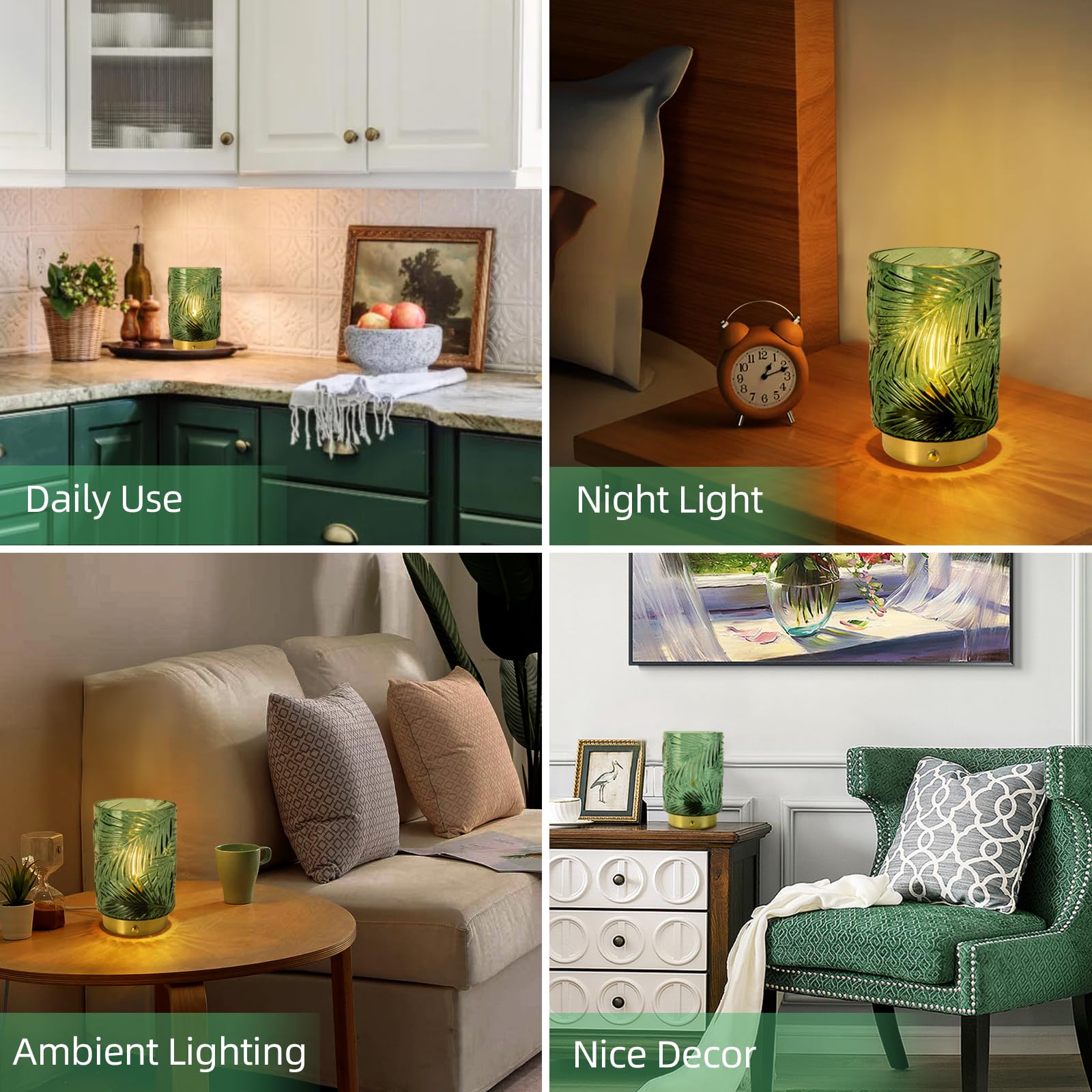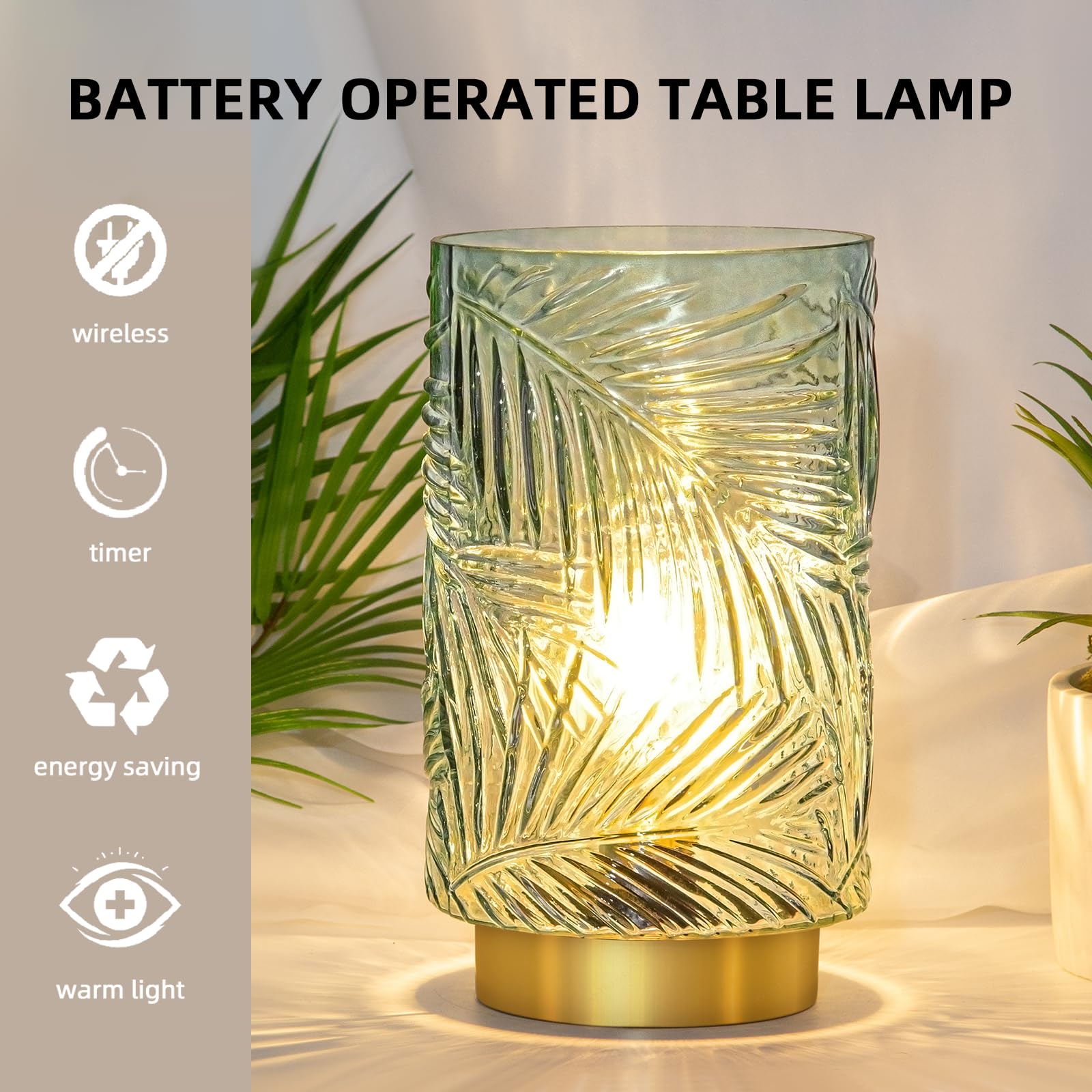 - Decorative Ambient Lamp And Emergency Lamp: Leaves pattern is a big hit nowadays. Our designer combine glass with leaf vein on the surface, with golden metal base to make this beautiful modern table lamp. Available in 2 sizes and each 3 colors in a glossy finish for your option. What’s more, it can be used as an emergency light during bad weather or power outages.Very suitable for areas without sockets, such as tabletop / corner shelf / entryway / stairway / bathroom