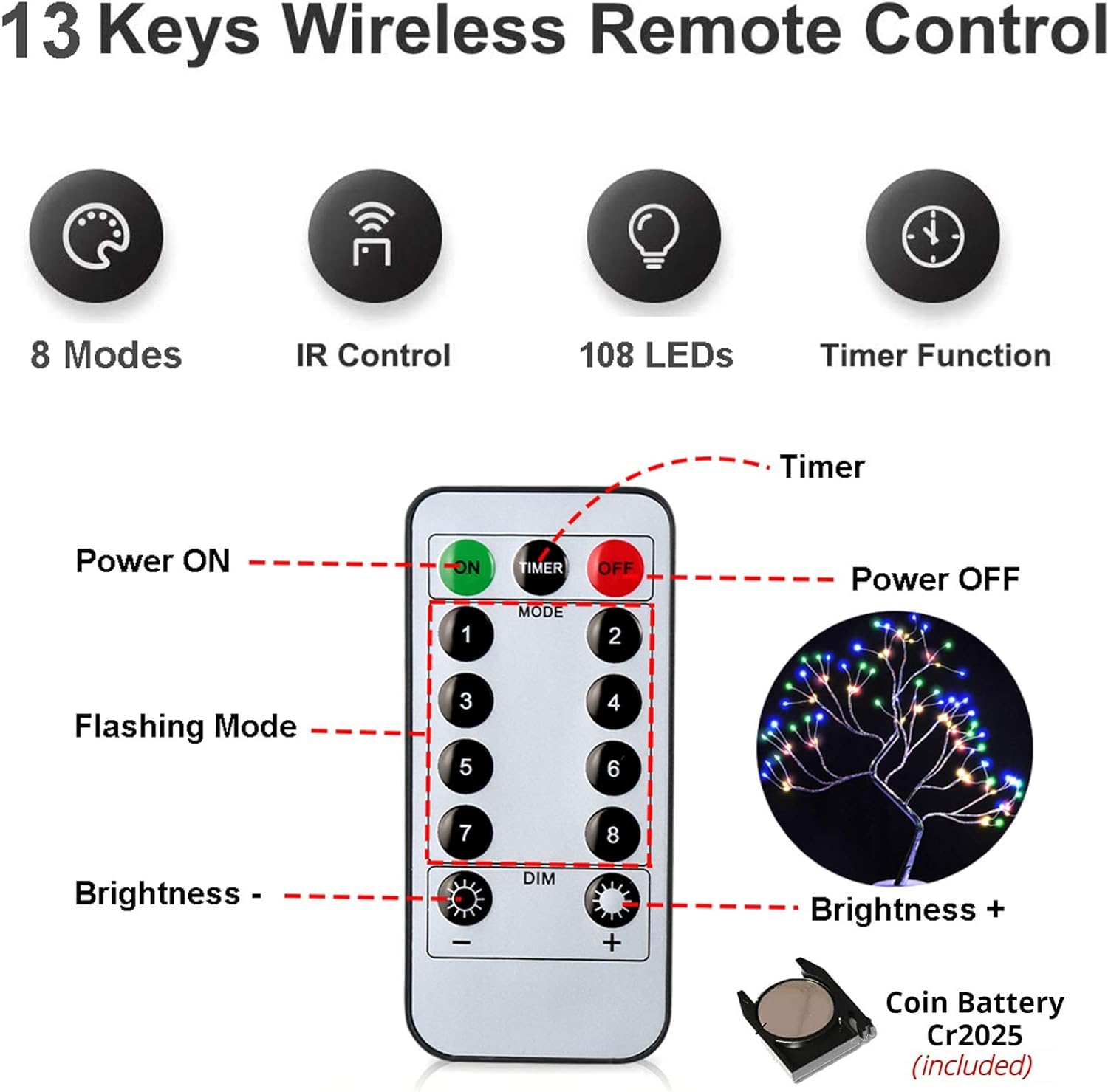 • ➤【Festival Decor Light】This LED fairy spirit tree light is very suitable for all kinds of festival decoration, it can bring you a different festival atmosphere and warm environment. 108 LED lights emit a warm white light, allowing you and your family to enjoy holidays and add a different color of family harmony.