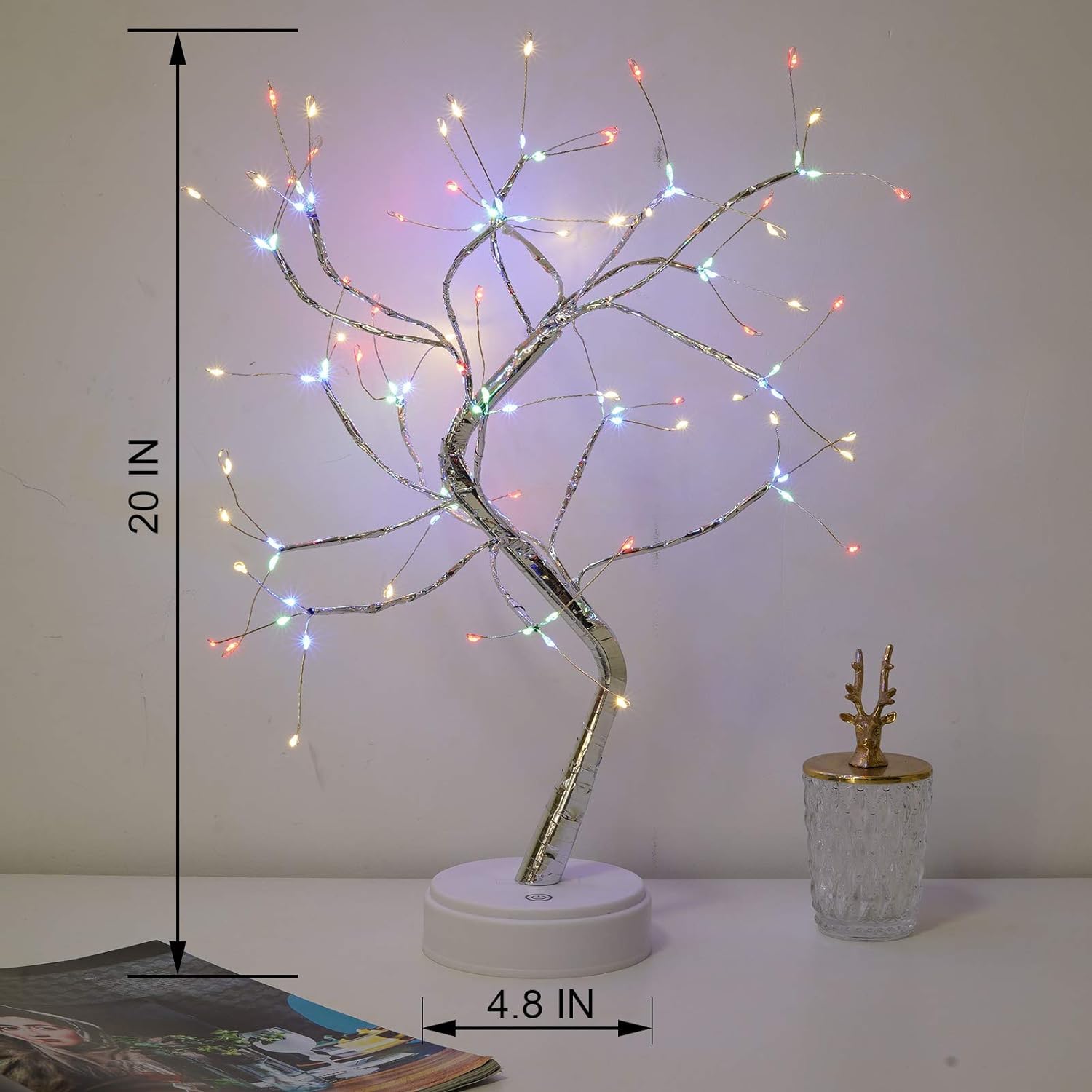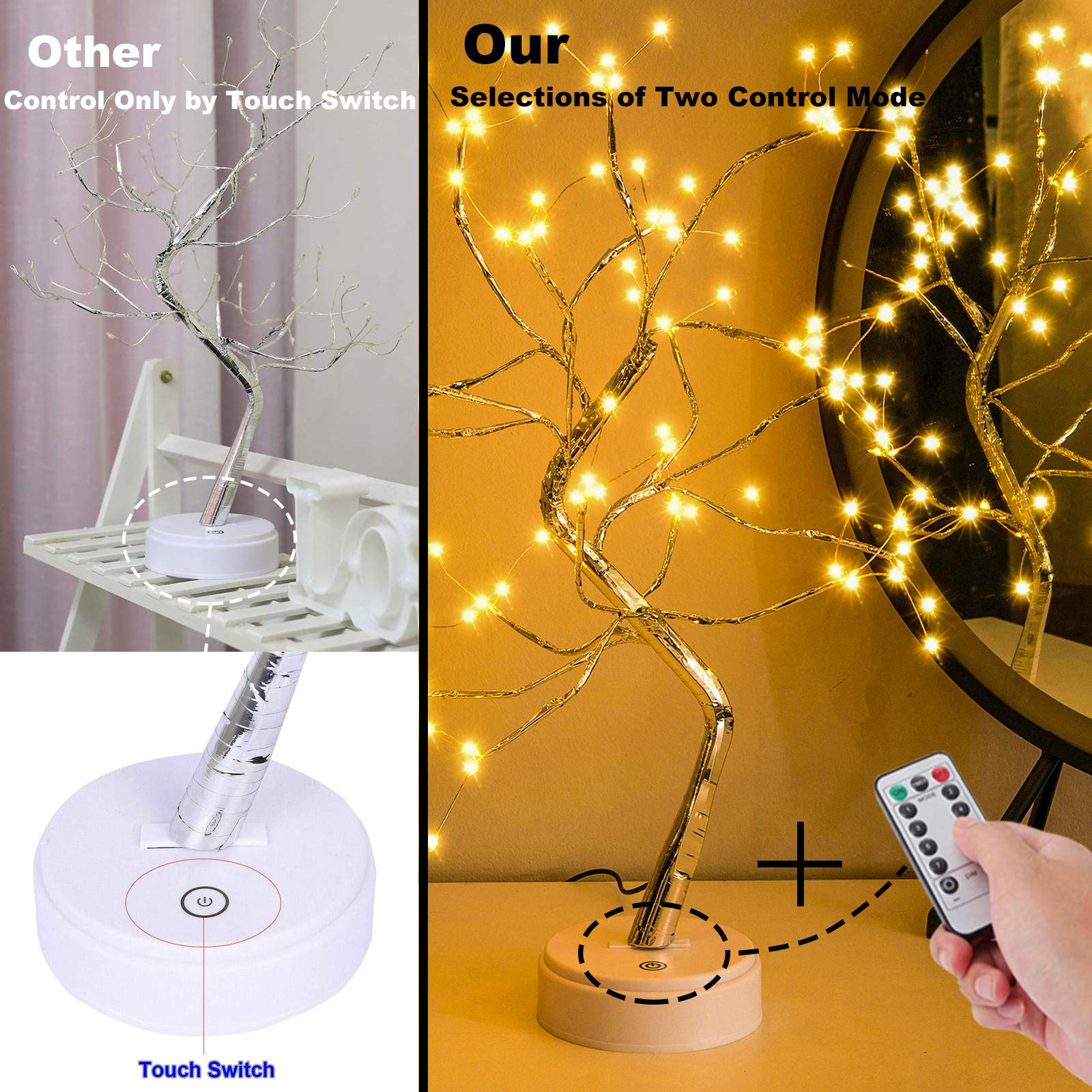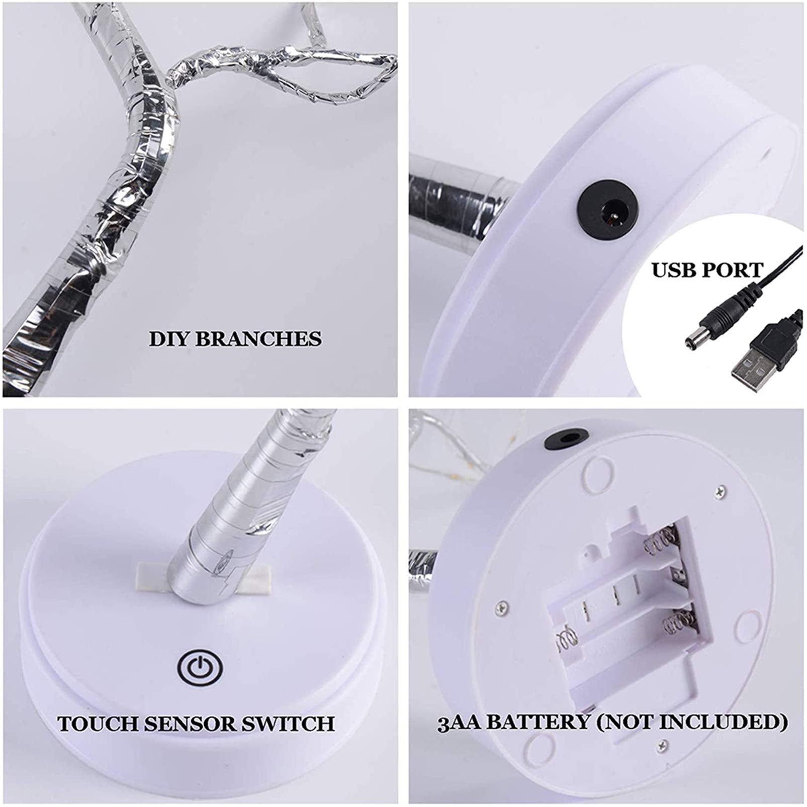 • ➤【High-quality LED Tree Lights】 LED tree lamp are composed of 108 LED copper wire string lights, touch sensor switches, ABS bases, and artificial branches. Operated by USB or 3 AA batteries, LED bulbs will not generate heat for a long time, safe and energy saving and save money. This LED tree light is a necessary decorative night light for your bedroom.