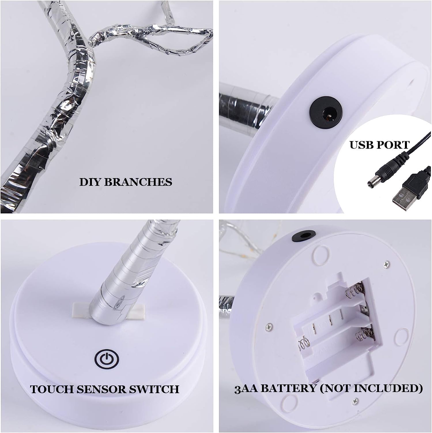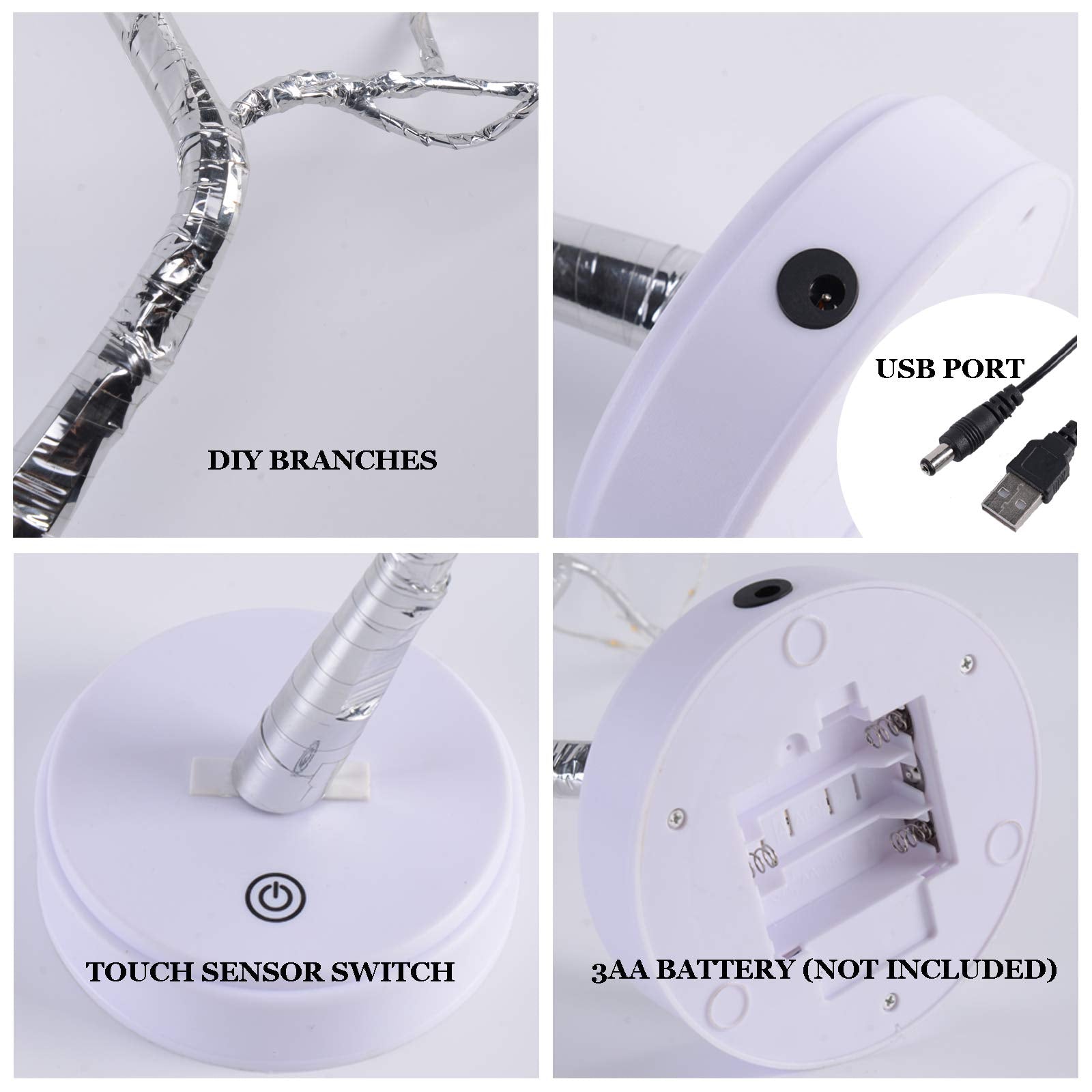 • ➤【3 AA Battery Powered Or USB】This tree light can be powered by USB or 3 AA batteries (not included), you can flexibly choose any where, easy to use. Using 3 AA batteries, you can move the decoration at will; use USB to save electricity, money and environmental protection. Important: Please unplug the USB cable when using the battery to avoid damage!
