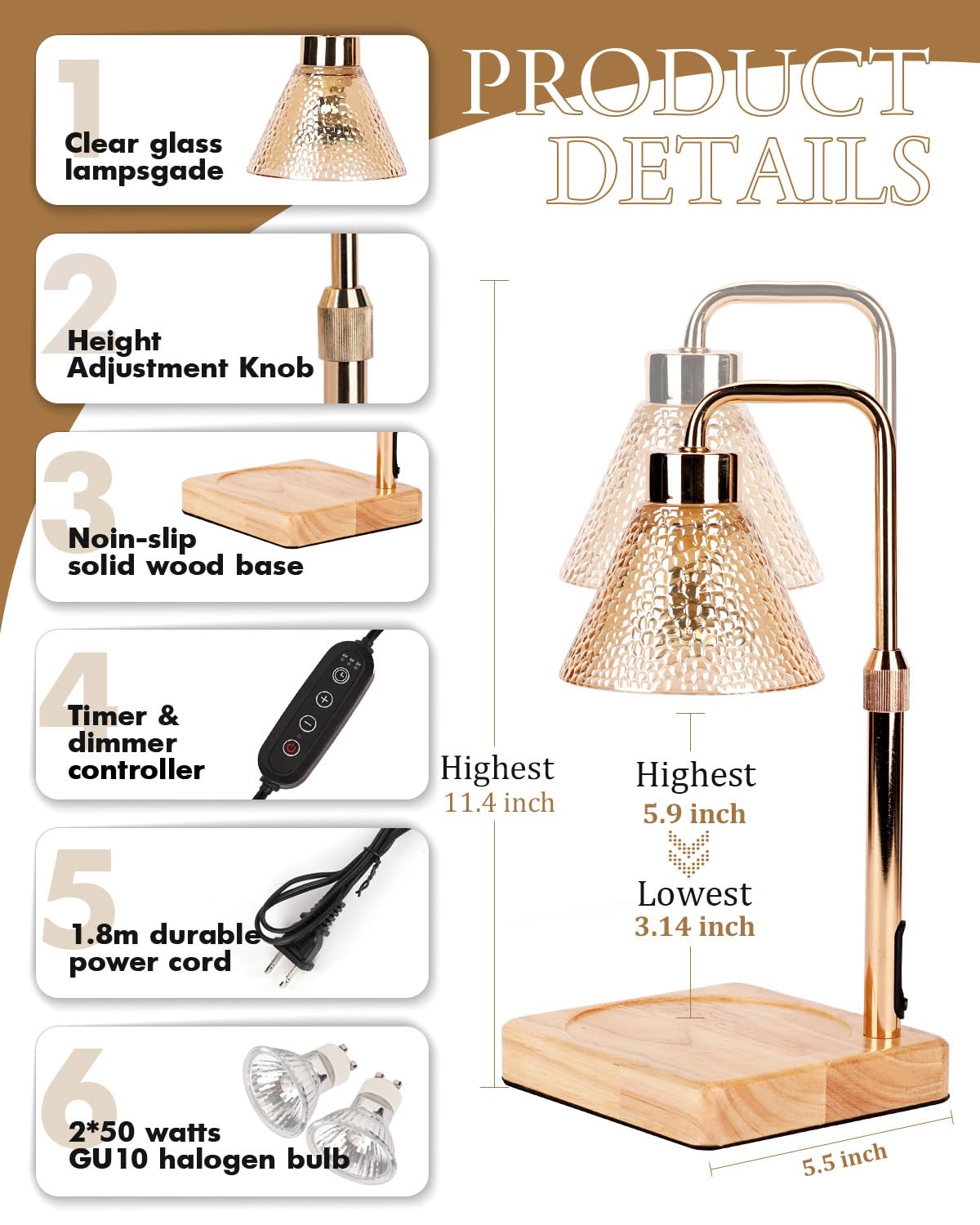 - Timer&Dimmable Controller: This candle burner lamp with timer is dimmable for meeting different ambiance needs. And it has 2 4 8 hours shut-off function. The brighter you set, the faster jar candles melts. It is a beautiful wax melter warmer lamp