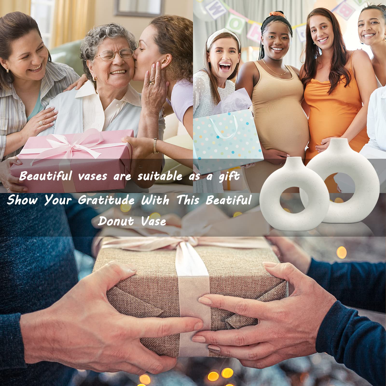 • 🌷【UNIQUE MODERN DESIGN 】– If you are tired of those dull and boring designs, then you will definitely be attracted by these beautiful hollow design white ceramic vases for home décor. The donut design makes the flower vases unique and stylish; you can see through the hollow out while enjoying beautiful flowers in the vase, which adds more romance and fashion to your house.