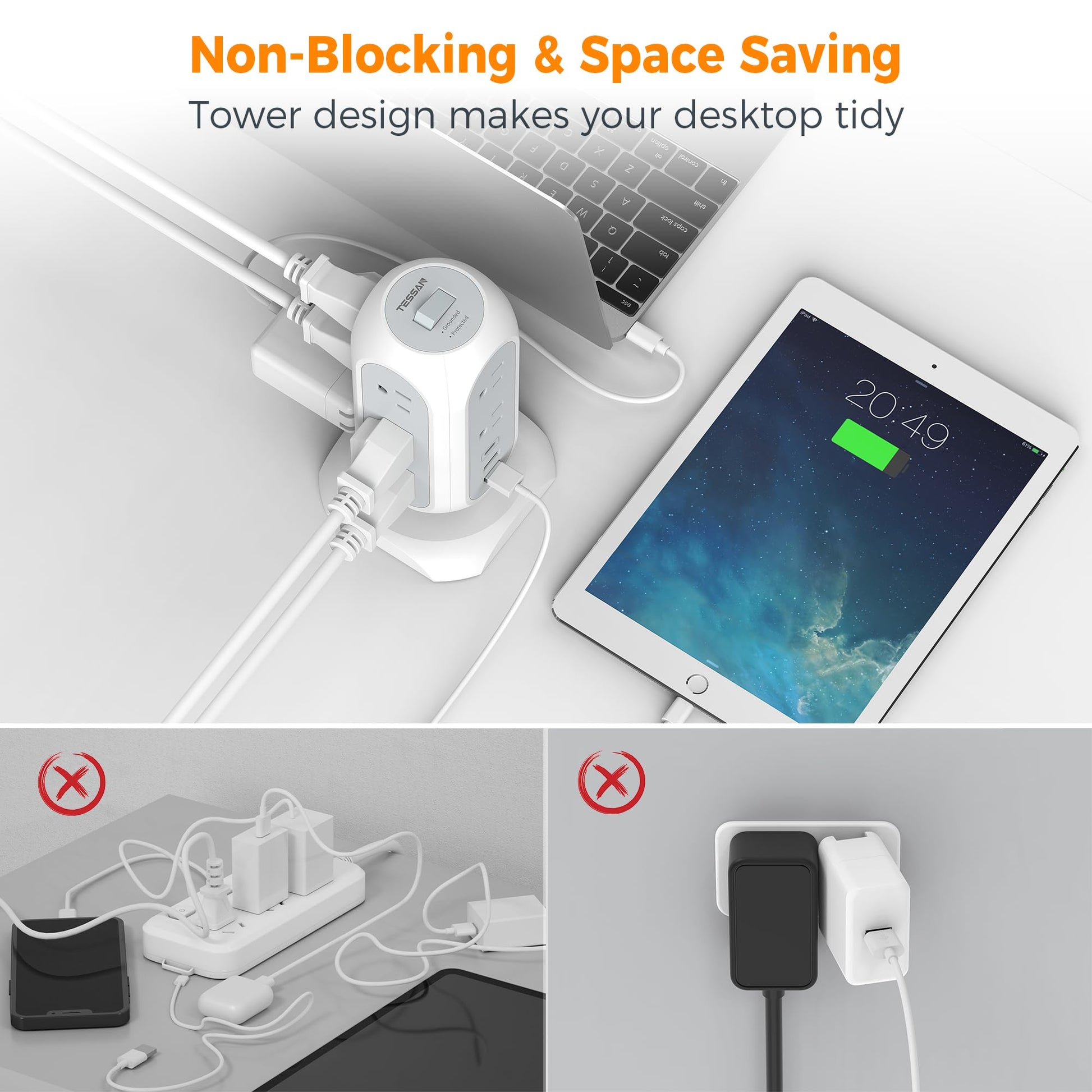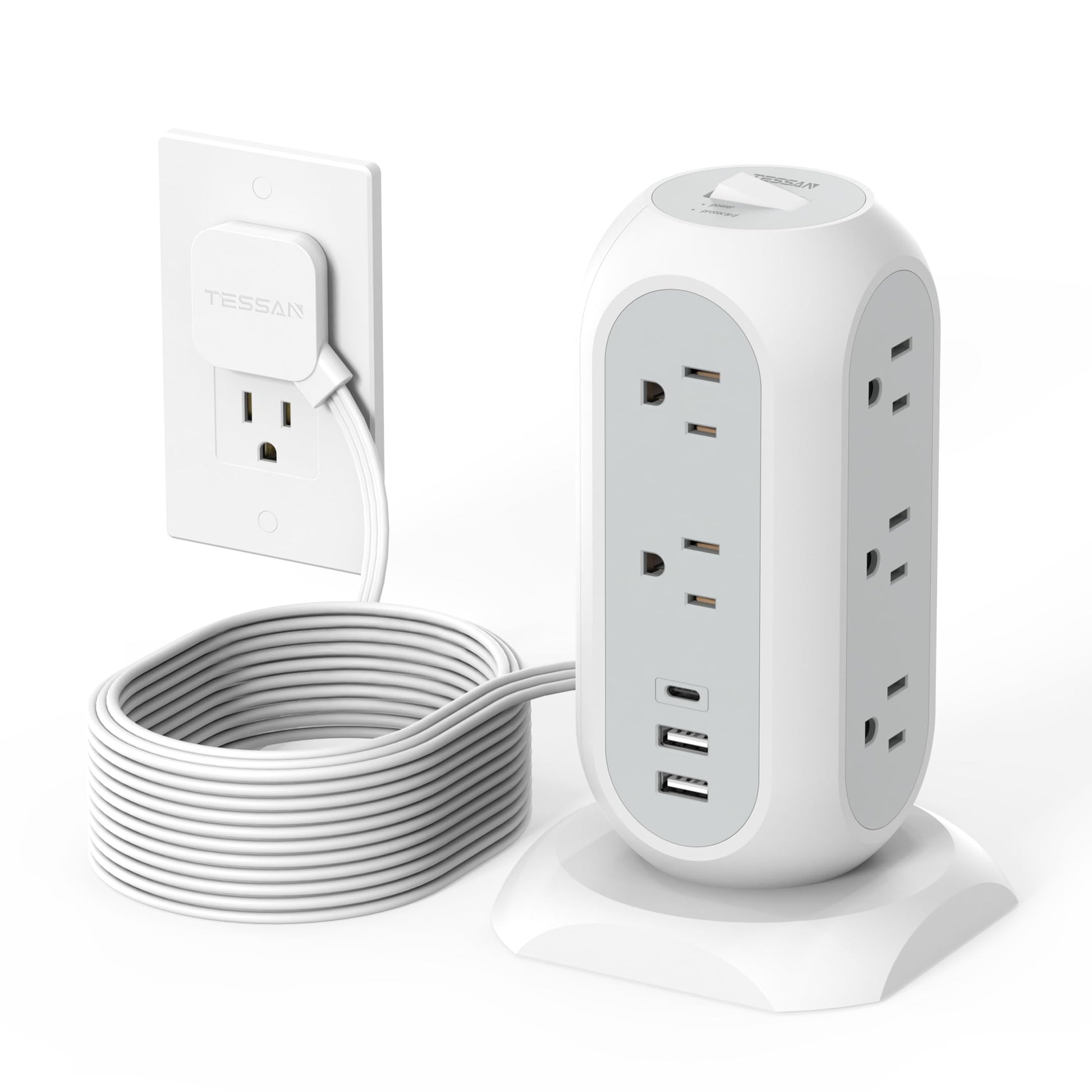 TESSAN Tower Power Strip 11 Outlets 3 USB 6 ft Cord