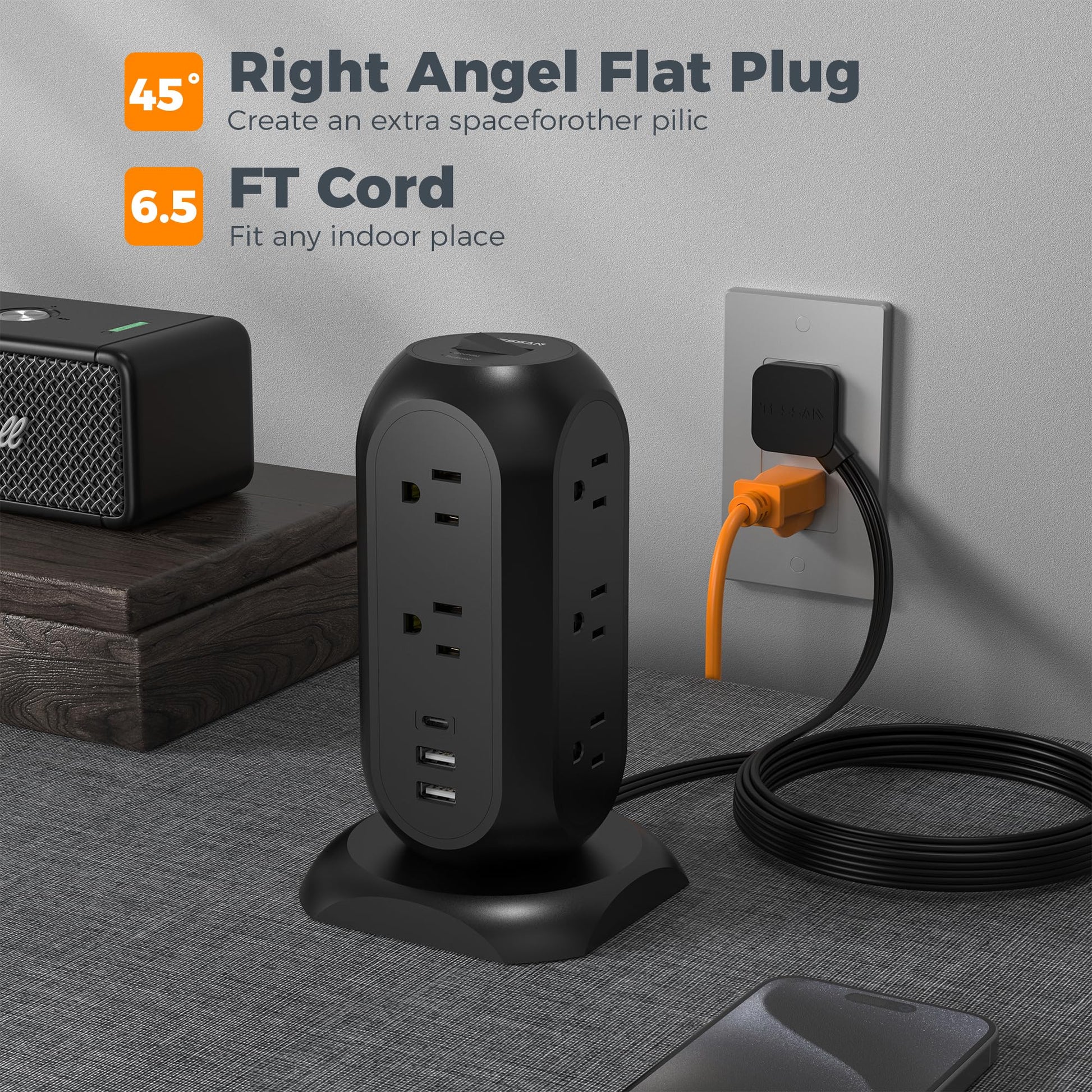 • Space Saving Design: 4-side compact design tower power strip takes up little space on your desk, cleans various cords and make your desktop organized; With 4 rubber feet at the bottom, efficiently keeps this 6 ft extension cord from slipping and sliding